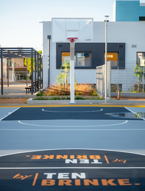 Σε στενή συνεργασία με το σχολείο και την τοπική κοινότητα, ανασχεδιάσαμε το γήπεδο μπάσκετ, εγκαταστήσαμε φωτοβολταϊκά πάνελ και δημιουργήσαμε στεγασμένο καθιστικό και αμφιθέατρο.